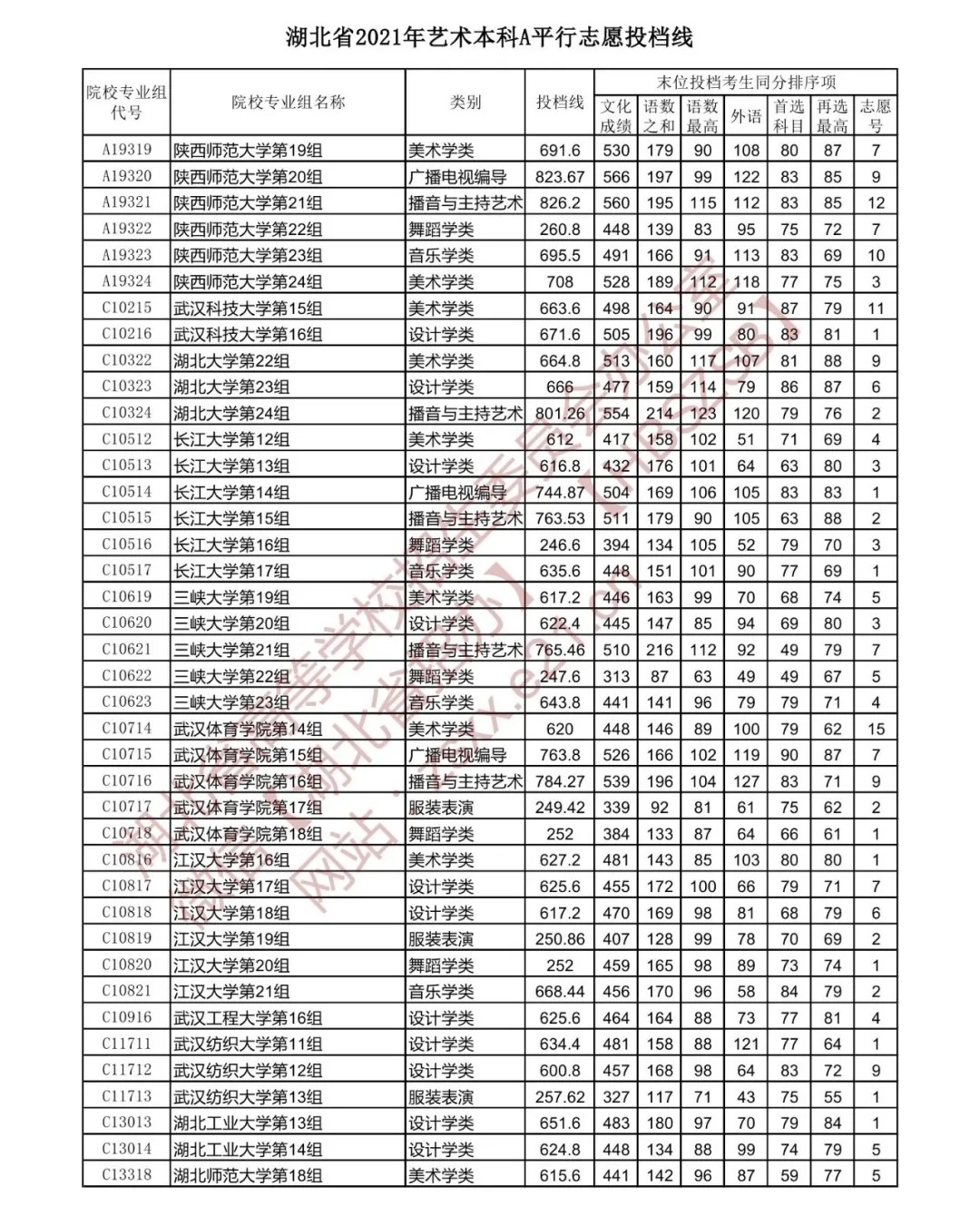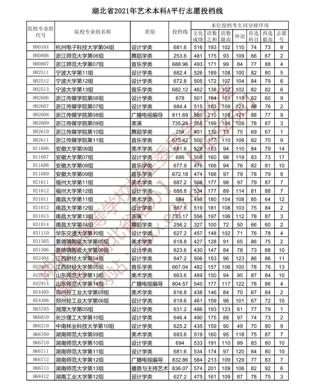 【导语】从湖北省教育考试院了解到,2021年湖北省艺术本科A平行志愿投档线已公布,为方便考生了解情况,现将有关事宜通知如下: