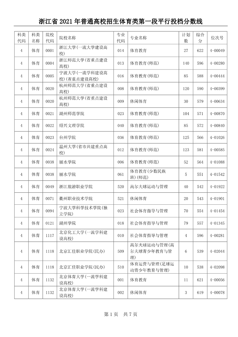 【导语】从浙江省教育考试院了解到,2021年浙江省普通高校招生体育类第一段平行投档分数线已公布,为方便考生了解情况,现将平行投档分数线整理如下: