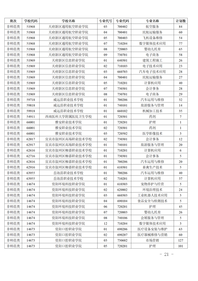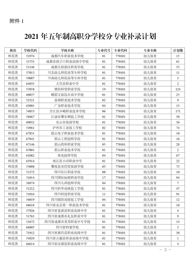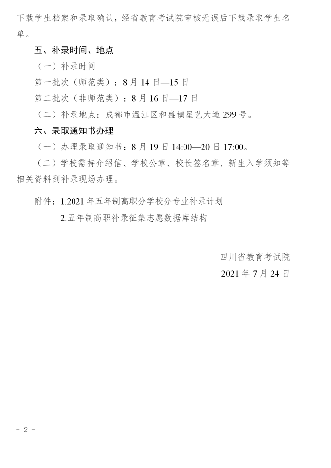 2021年四川中高职衔接五年贯通培养招生补录工作的通知