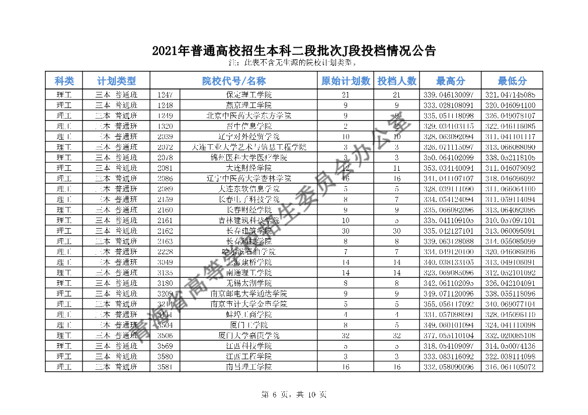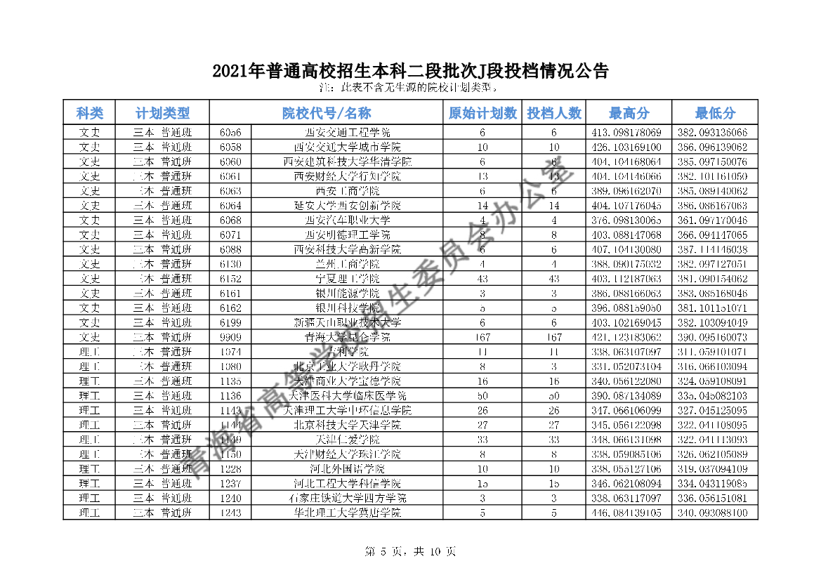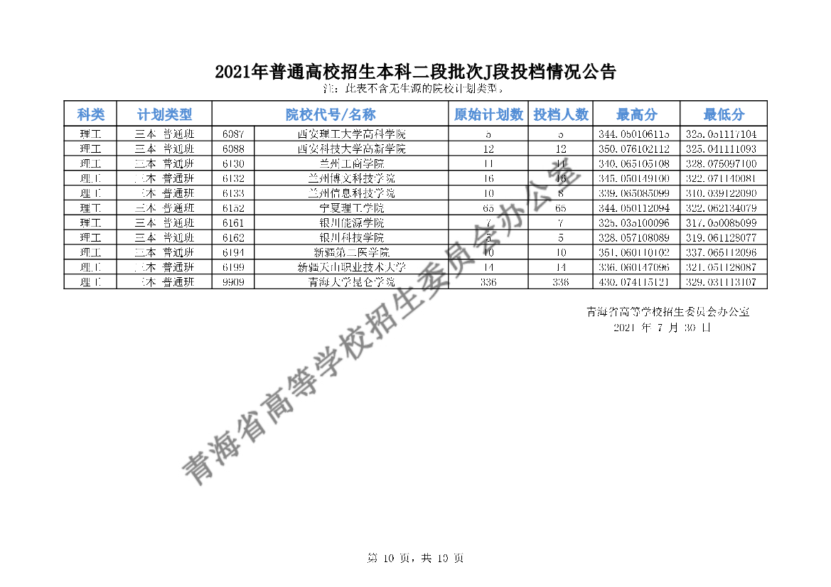 2021年青海普通高校招生本科二段批次J段投档情况公告