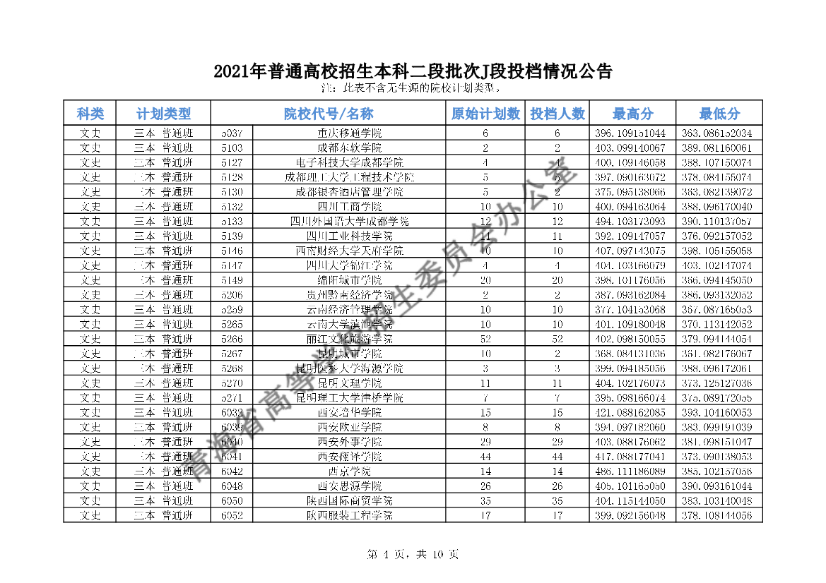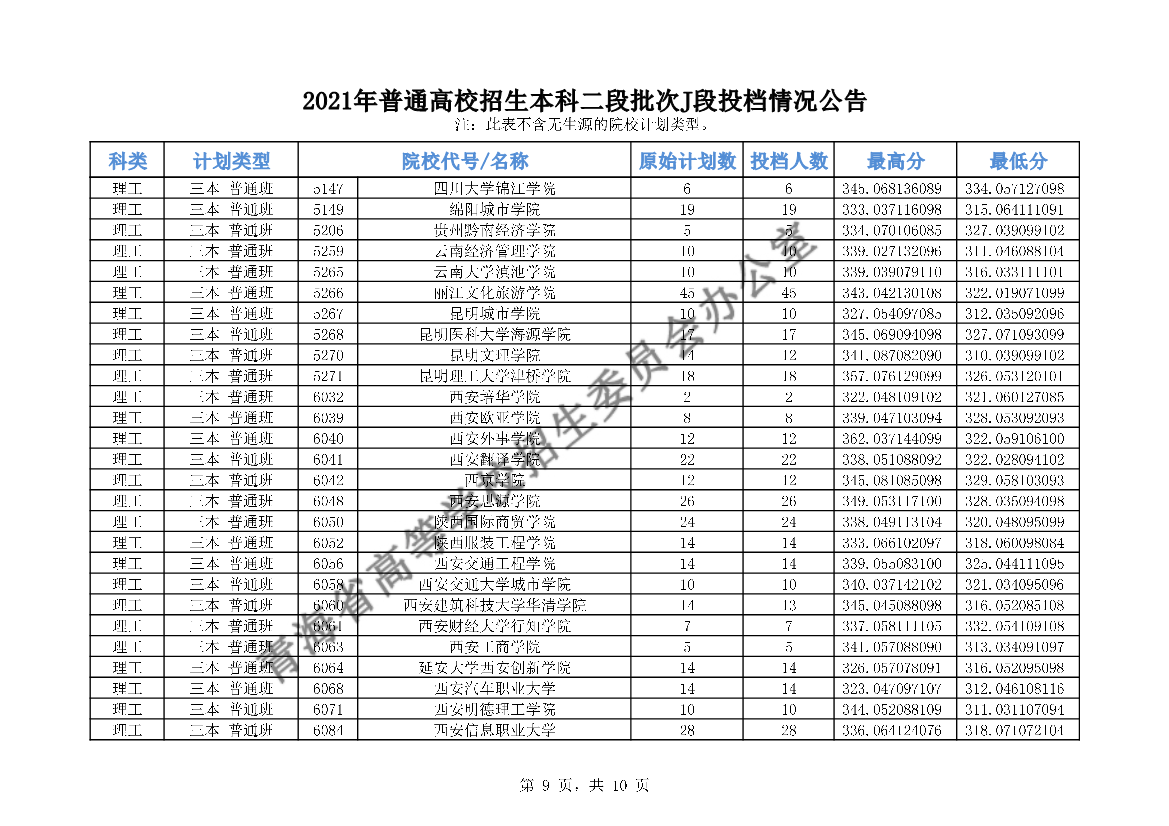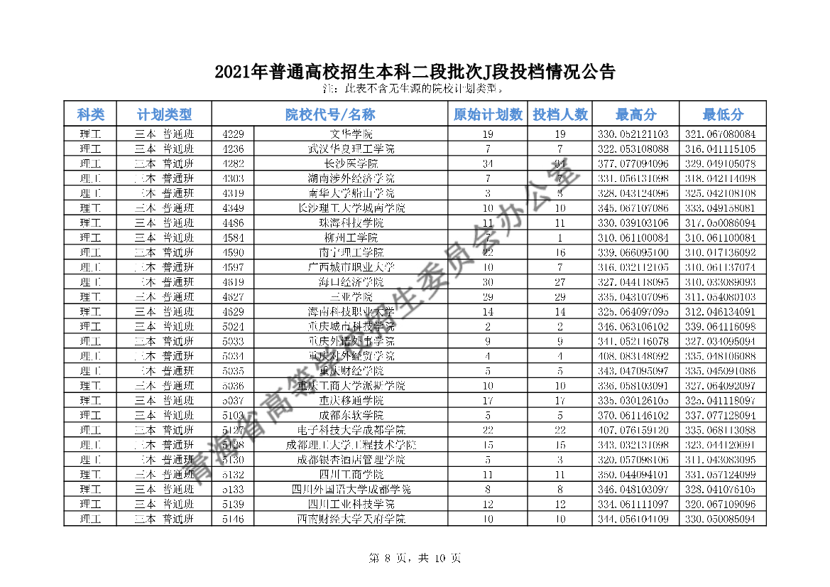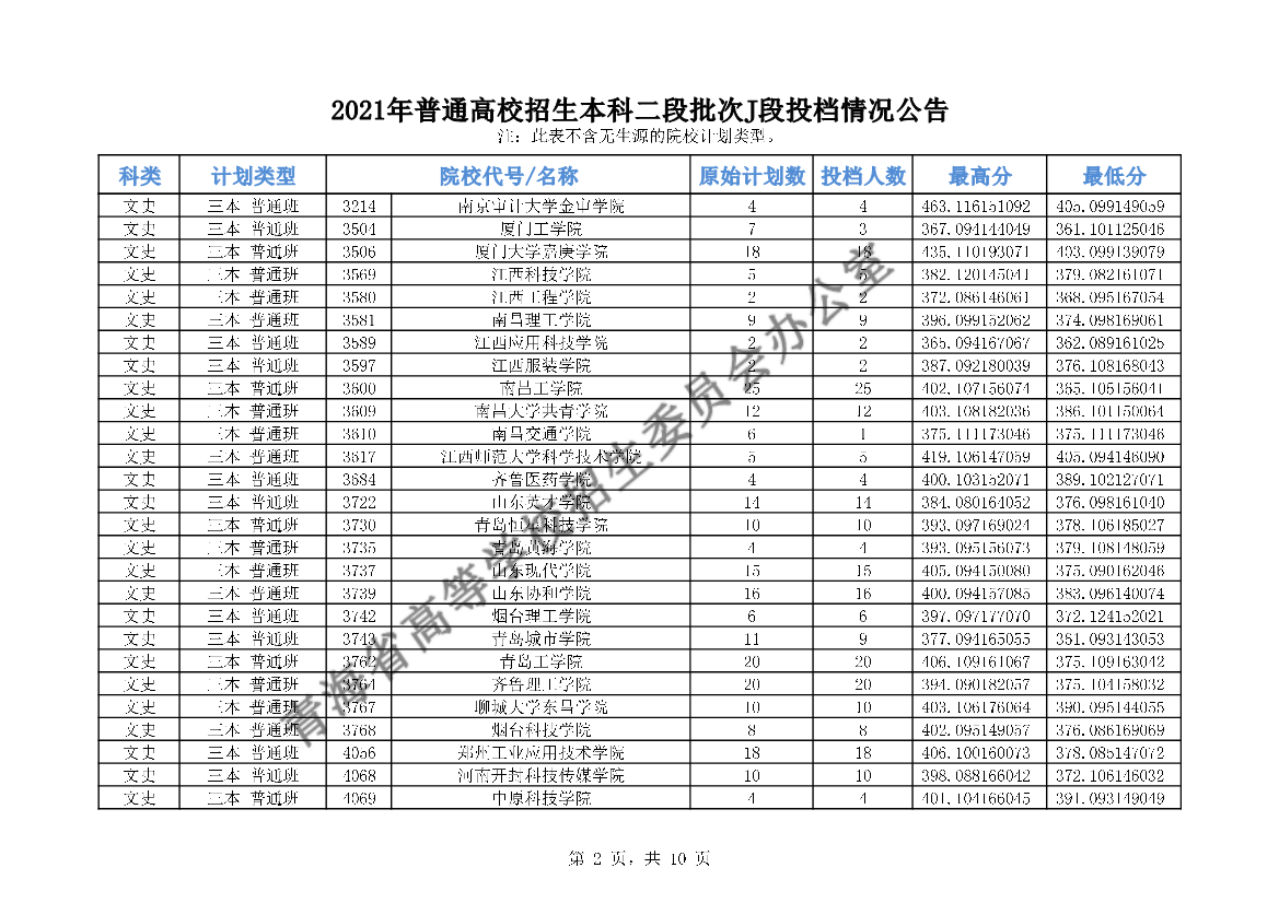 2021年青海普通高校招生本科二段批次J段投档情况公告