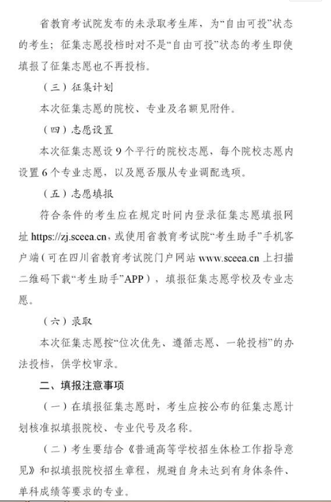 四川:关于本科第二批未完成计划院校征集志愿的通知