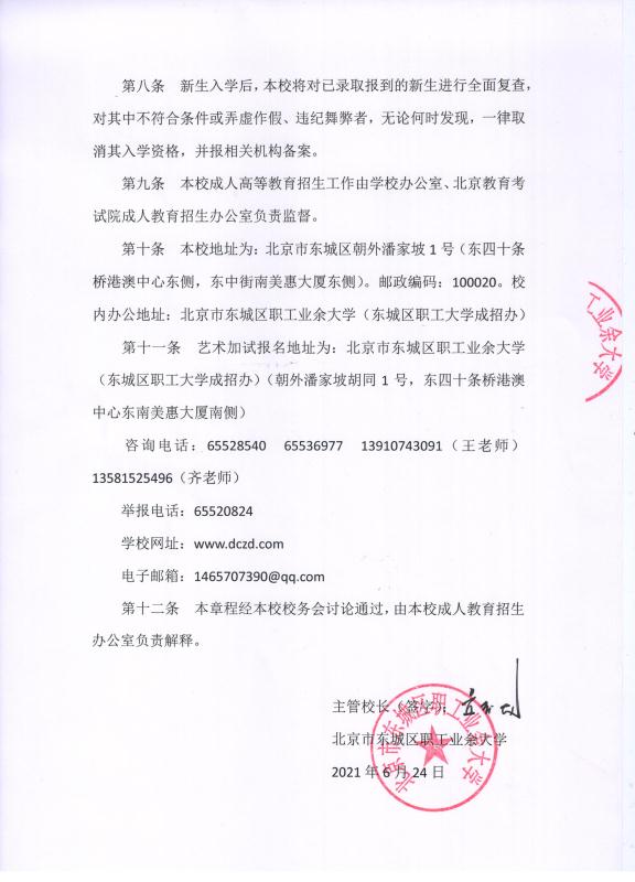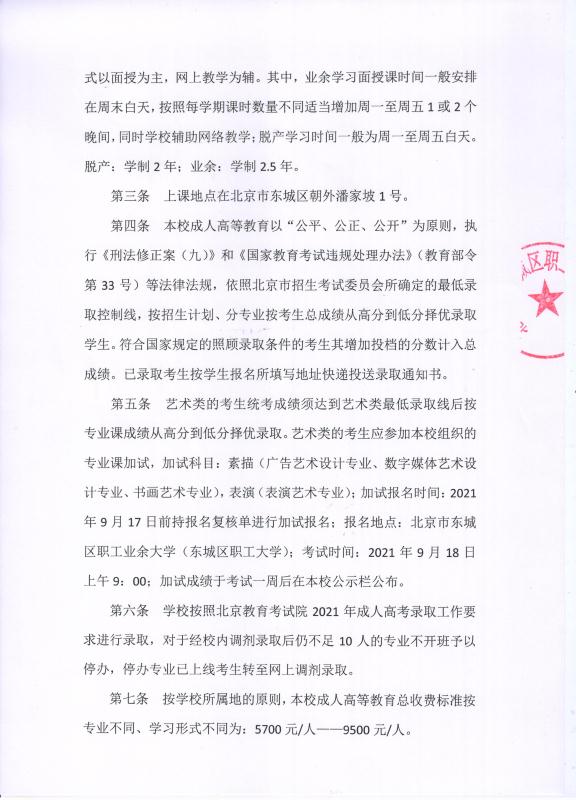 2021北京市东城区职工业余大学成人高等学校招生章程