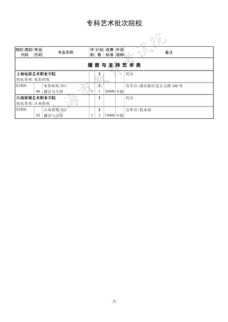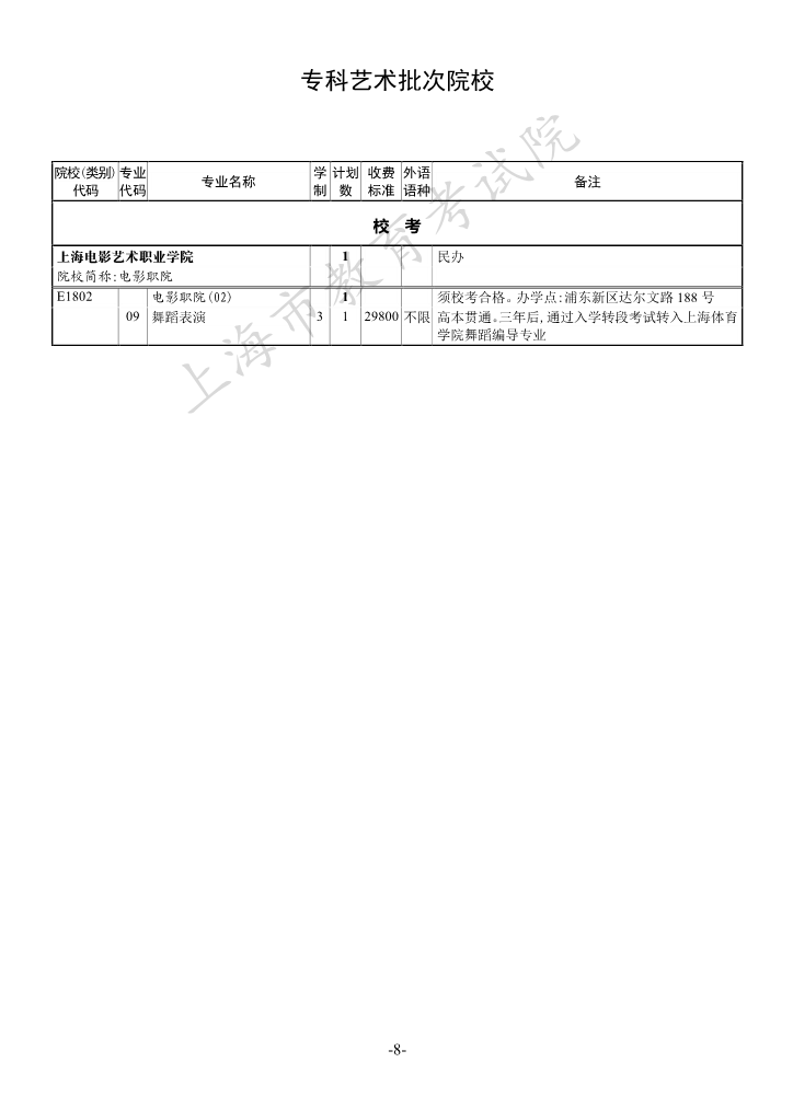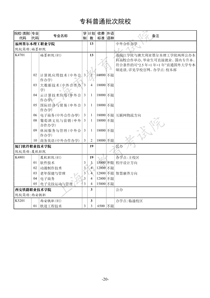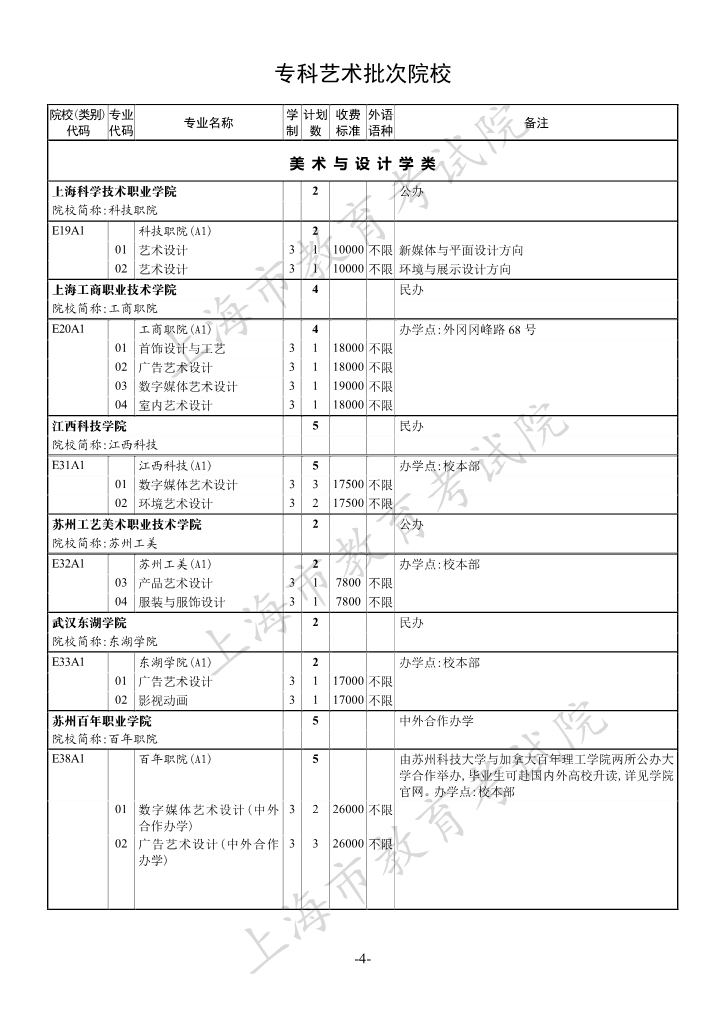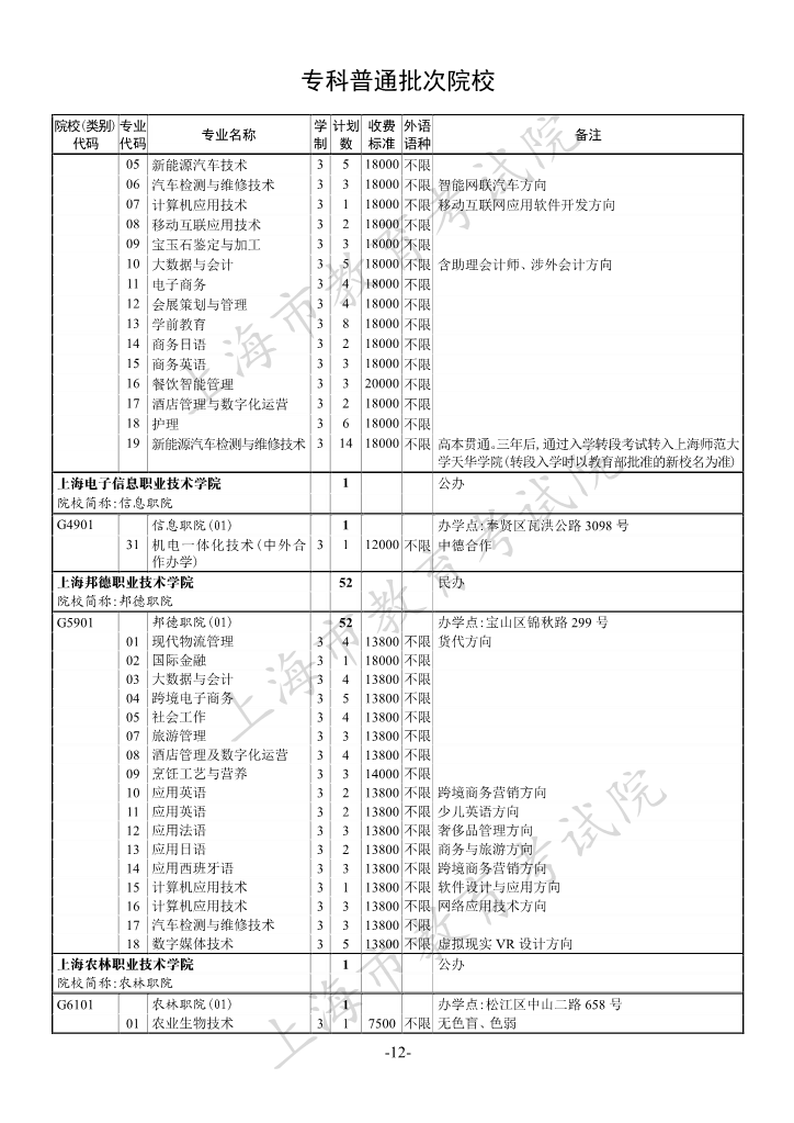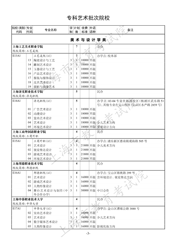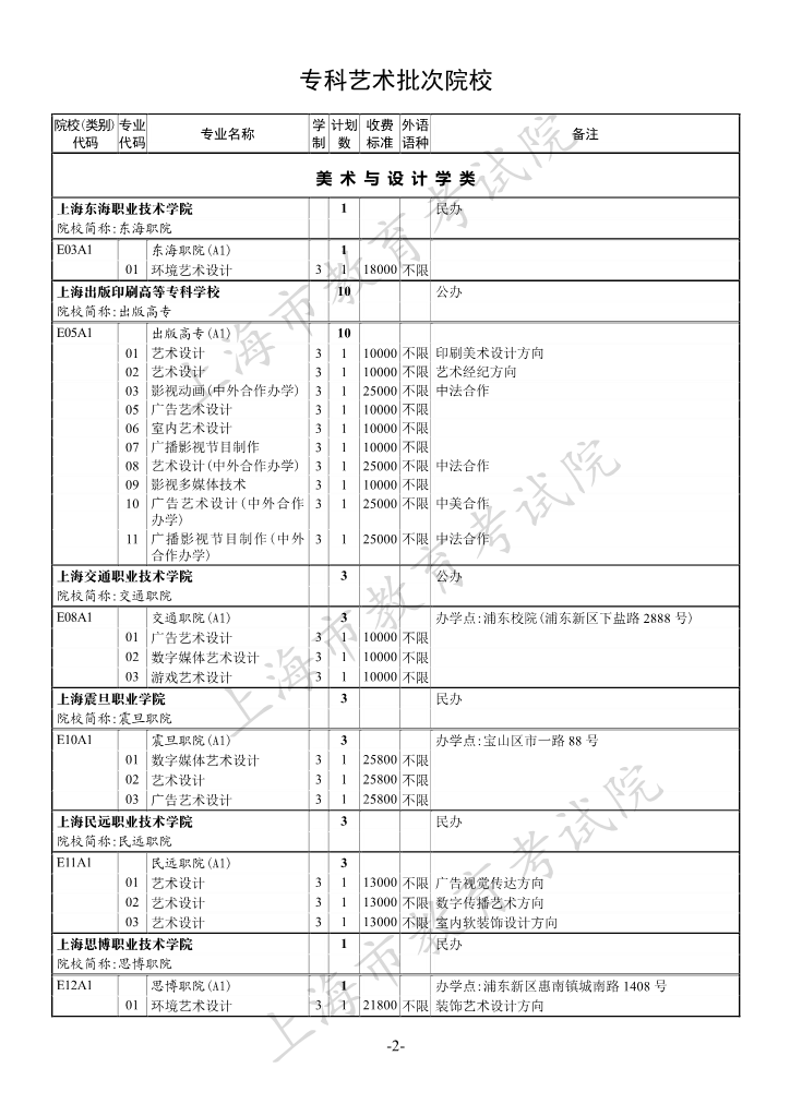 2021上海专科批次征求志愿填报院校(类别)缺额计划表