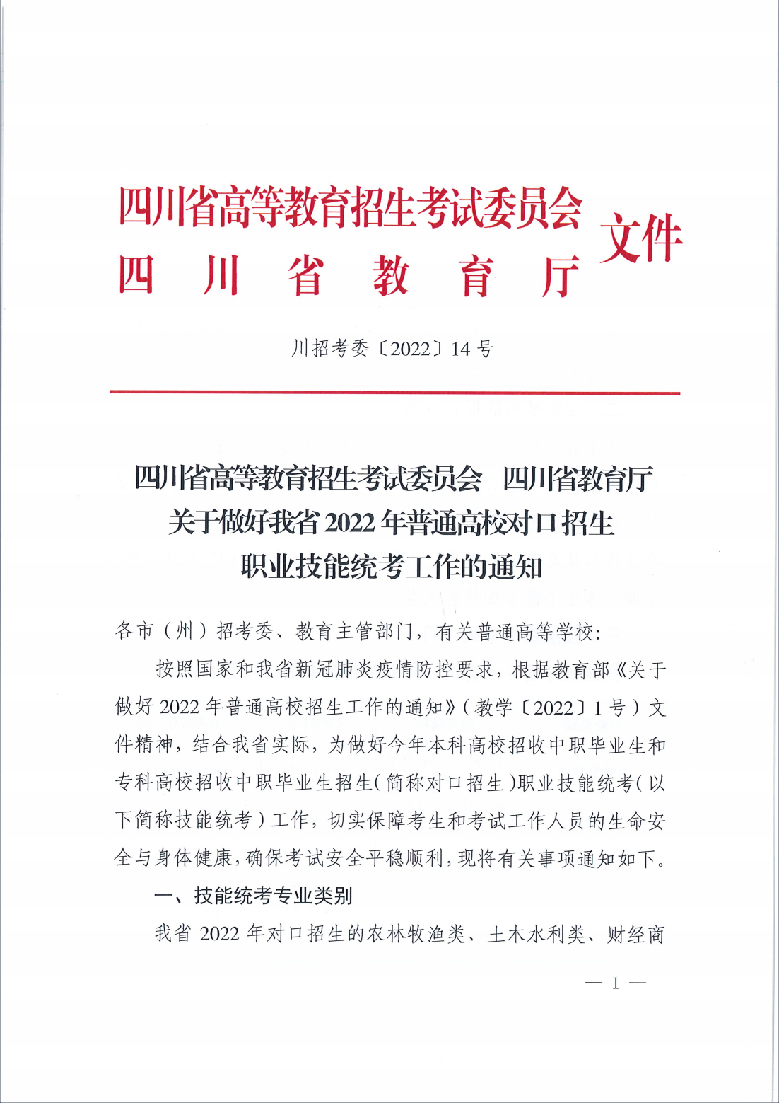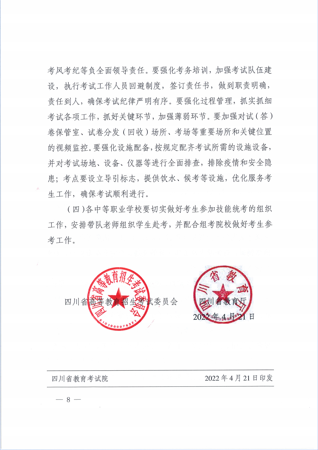 关于做好四川省2022年普通高校对口招生职业技能统考工作的通知