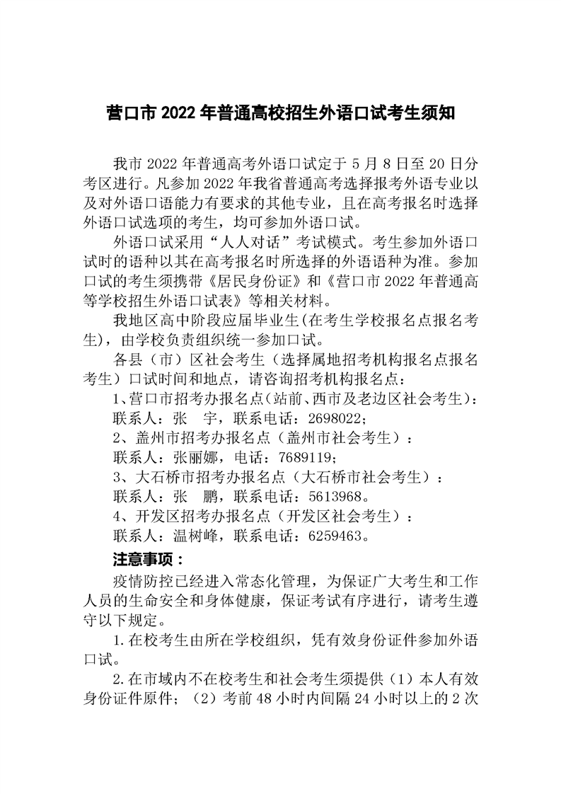 【#高考# 导语】从营口市教育局了解到,辽宁营口2022年普通高校招生外语口试考生须知已发布,详细内容如下: